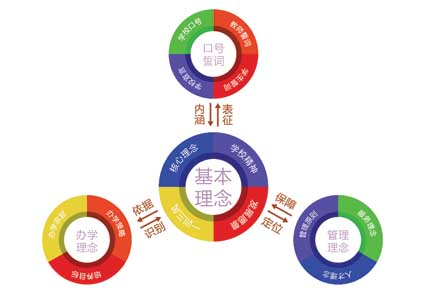 学校理念文化是学校文化SIS规划系统的灵魂,该系统是由学校师生的思想观念等因素长期影响积淀而形成的主导意识和深层心理定势,对内可以激活师生为学校的办学目标而奋斗,对外可以塑造学校形象。