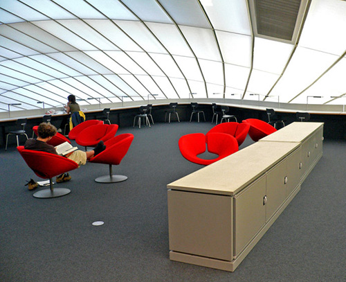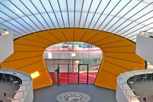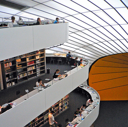 设计说明: 柏林自由大学哲学系图书馆设计独特,为柏林大学和柏林城增添了异彩!它重视建筑细部,赋予其原有色彩,四层都自然通风,泡沐样的围栏供读者读书,让读者惬意而自然。有着柏林之脑之称的图书馆,让读者能透过头顶的天窗看到外面的自然光线和天空,接受智慧的启迪而思想无限。