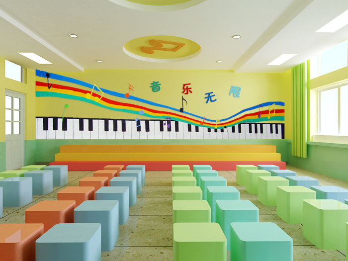 设计说明: 音乐室文化主要体现活泼有趣的音乐文化格调,借助音符、钢琴乐器、五线谱及其钢琴进行音乐文化的渲染,以全方位展现音乐育人的重要性。